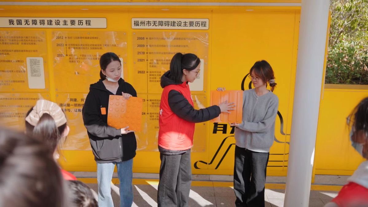 感官花园旁拱形长廊内的64张北大无障碍公益海报也吸引了不少市民的关注。大家纷纷举起手机拍照、留言鼓励。青年志愿者结合现有公园设施,向观众详细讲解盲道功能、轮椅坡道标准等实用实用知识。还开展“交换视力”体验盲道活动,参与活动的市民在志愿者的指导下戴上眼罩、戴上盲罐,尝试沿着盲道行走。福州健康职业技术学院学生王丁硕感慨:“戴着眼罩,我能以惊人的步子走几米。我能真正理解有多难旅行不适合盲人。”